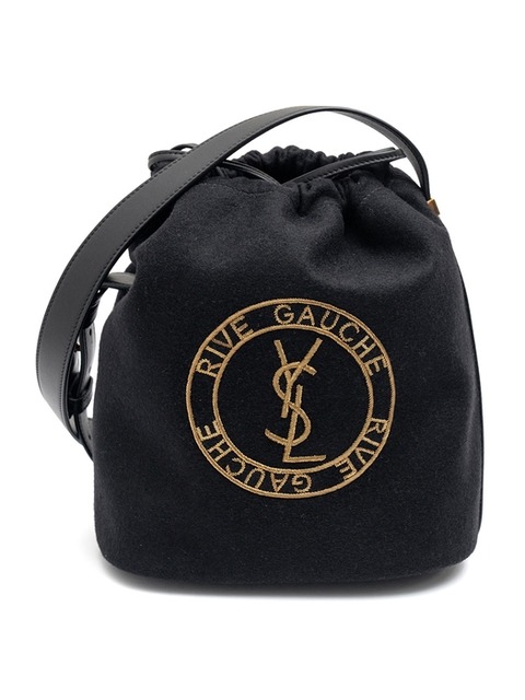생로랑 자수 펠트 스무스 레더 리브 고시 레이스드 버킷백 블랙 골드 710261-FAAJ6-1055