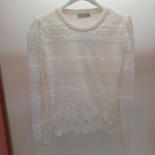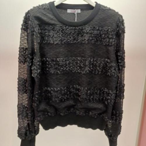 Latium HC06 시스루 소매 입체 꽃잎 배색 깔끔한 무지 플로라운드 니트티