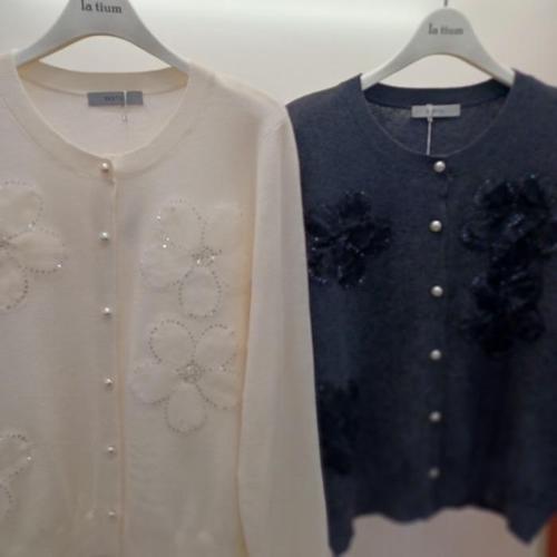 [라티움]Destijl HC06 크롭 입체 플라워 스팽글 라운드 니트티 울 가디건 D2613cd08I (45729931)