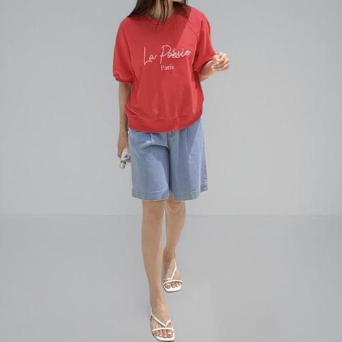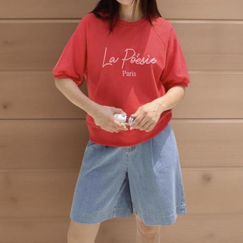 |KHT948F|여성 반팔 코튼 맨투맨 루즈핏 입체 프린트 시보리 티셔츠
