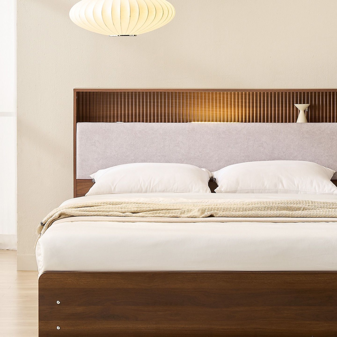 누오보 LED 원목 통깔판 침대프레임 Q/K 겸용