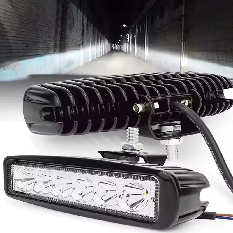 1/2개 12V 자동차 LED 라이트 바 18W 6000K 초고휘도 자동차 LED 작업등 IP67 방수 플러드 스팟 라이트 화이트 오프로드 헤드라이트