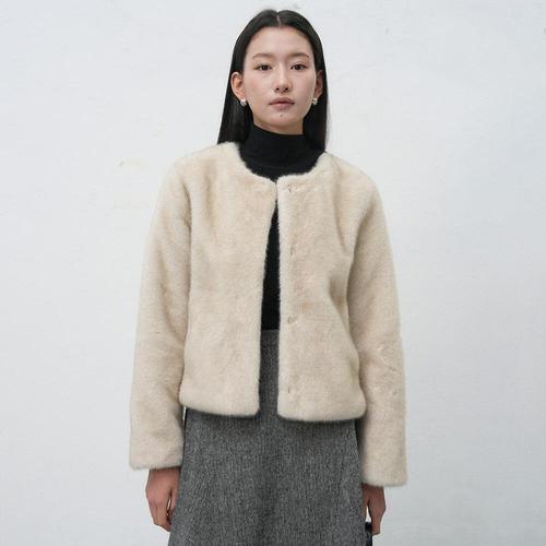 [제너럴아이디어]WOMAN 노카라 머플러 페이크 퍼 자켓 [BEIGE] / WBE4L07536