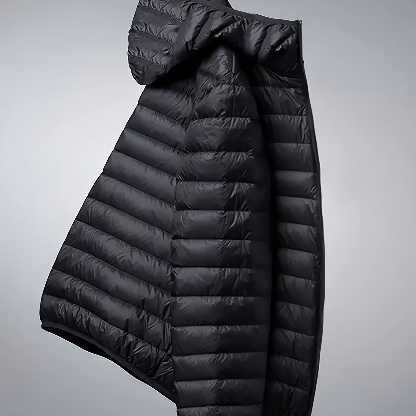 TEMU 남성용 패딩 코트 - 후드 & 지퍼 클로저, 기계 세탁 가능, 따뜻한 겨울 레이어링 (봄/가을) - 캐주얼 아우터웨어