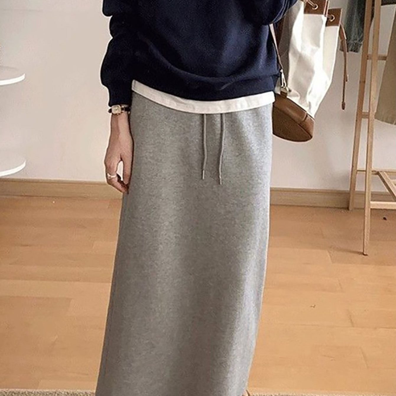 TEMU 여성 봄가을 캐주얼 h라인 트레이닝 치마 데일리 레저 통근 하이웨스트 부드러운 뒷트임 스트랩 편안한 밴딩 스포츠 일자 롱 스커트 슬림소녀 SLIM GIRL