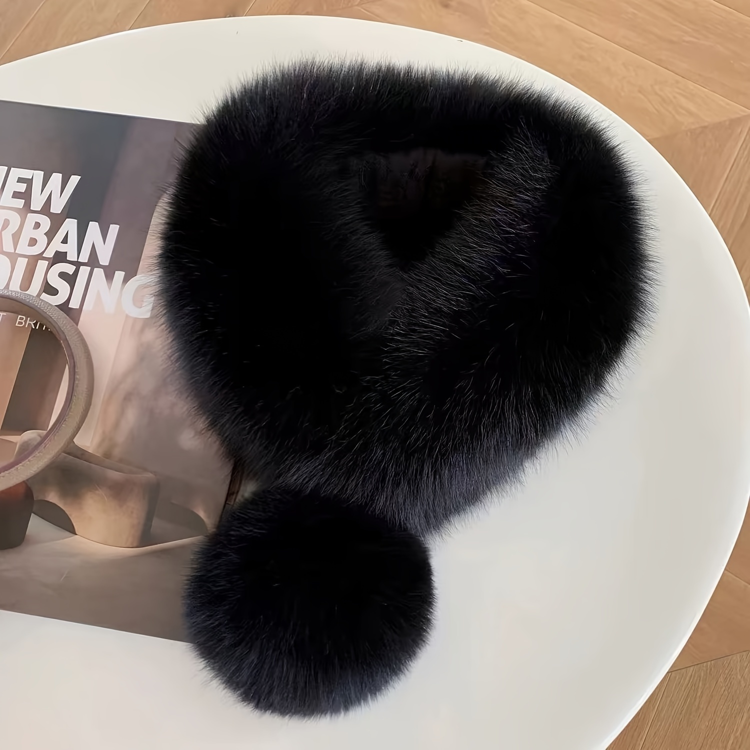 TEMU 포멜로미가 돋보이는 스타일리시 여성용 스카프 1개. 바람에 강하고 장식적인 디자인, 한국 스타일 플러시 칼라, 편안함과 패션을 위한 조절 가능한 핏 제공.