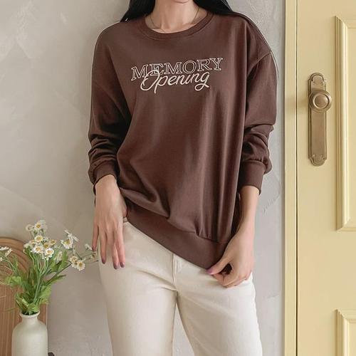 [다잇템]여자 베이직핏 FW 코튼 자수티셔츠 맨투맨 (18501461A)