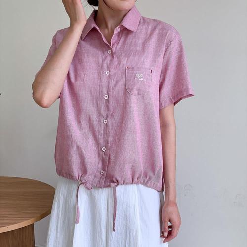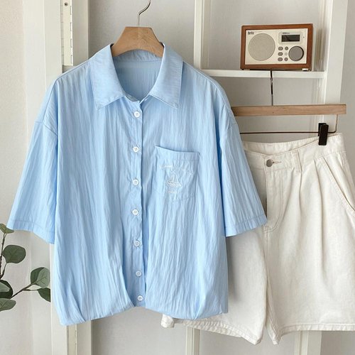 여성 카라넥 돗단배 자수 반팔 셔츠 블라우스 BONG-WBL-4502-블루