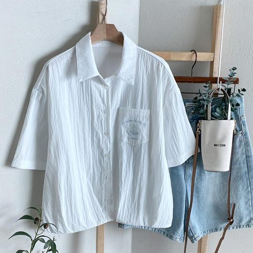 여성 카라넥 돗단배 자수 반팔 셔츠 블라우스 BONG-WBL-4502-화이트