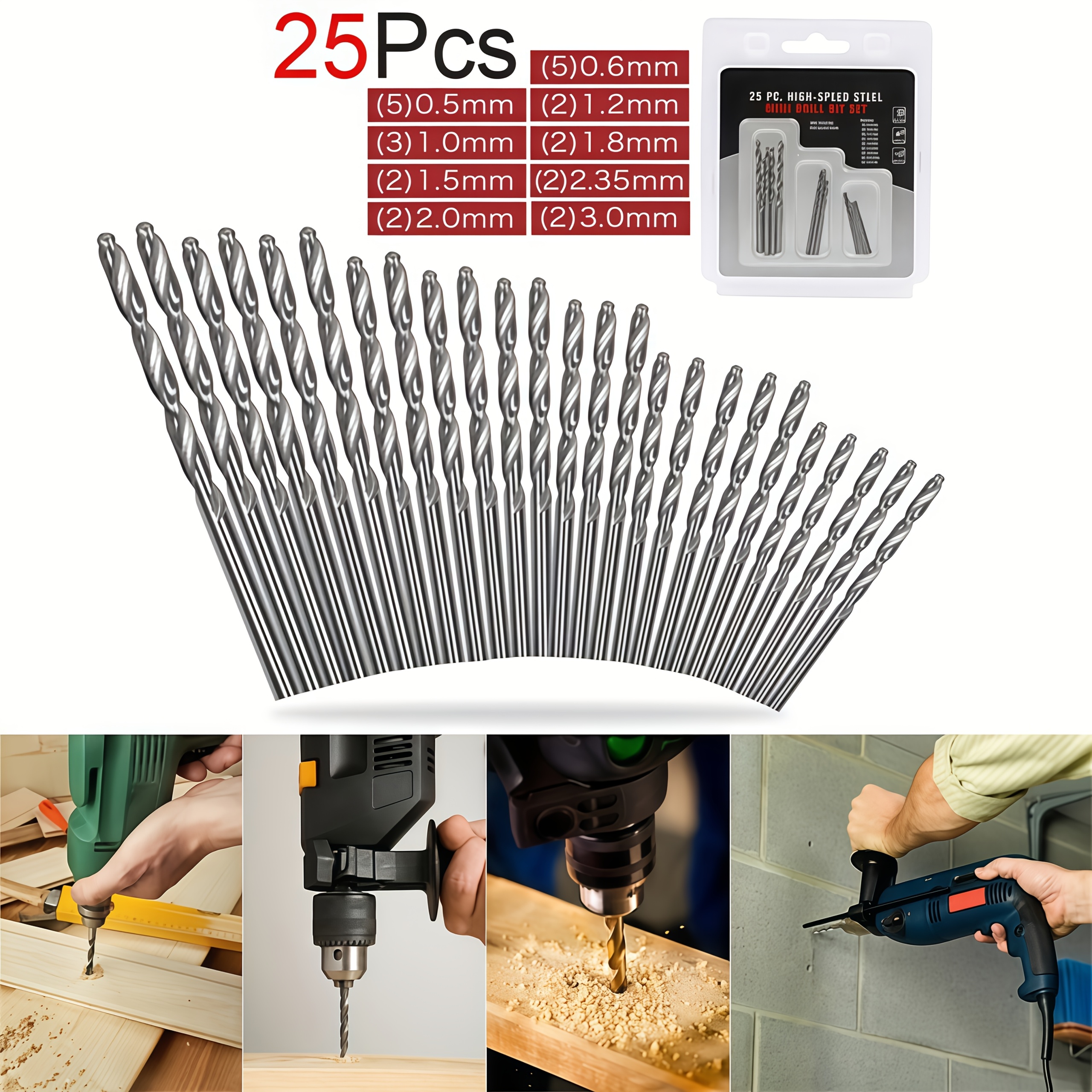 TEMU 25개 핸드 드릴 세트, 드릴 비트, 드릴, 0.5-3mm, 25개 드릴 비트, 고속강 드릴 비트, 라운드 샹크 드릴, 금속, 나무, 플라스틱 팔찌 정밀 드릴링용, 크리스마스 선물