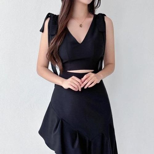 [신상오픈런]|KSO4A8E|지라비 양브이 여성 프릴장식 트임 미니원피스 슬림핏_18169877_597559