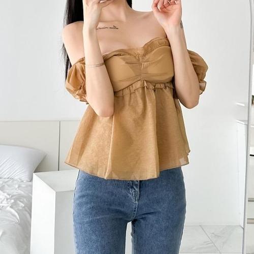 [신상오픈런]|CMH2C55|부느티 여성 블라우스 볼륨 오프숄더 플레어 짧은 프릴장식_18157715_597559