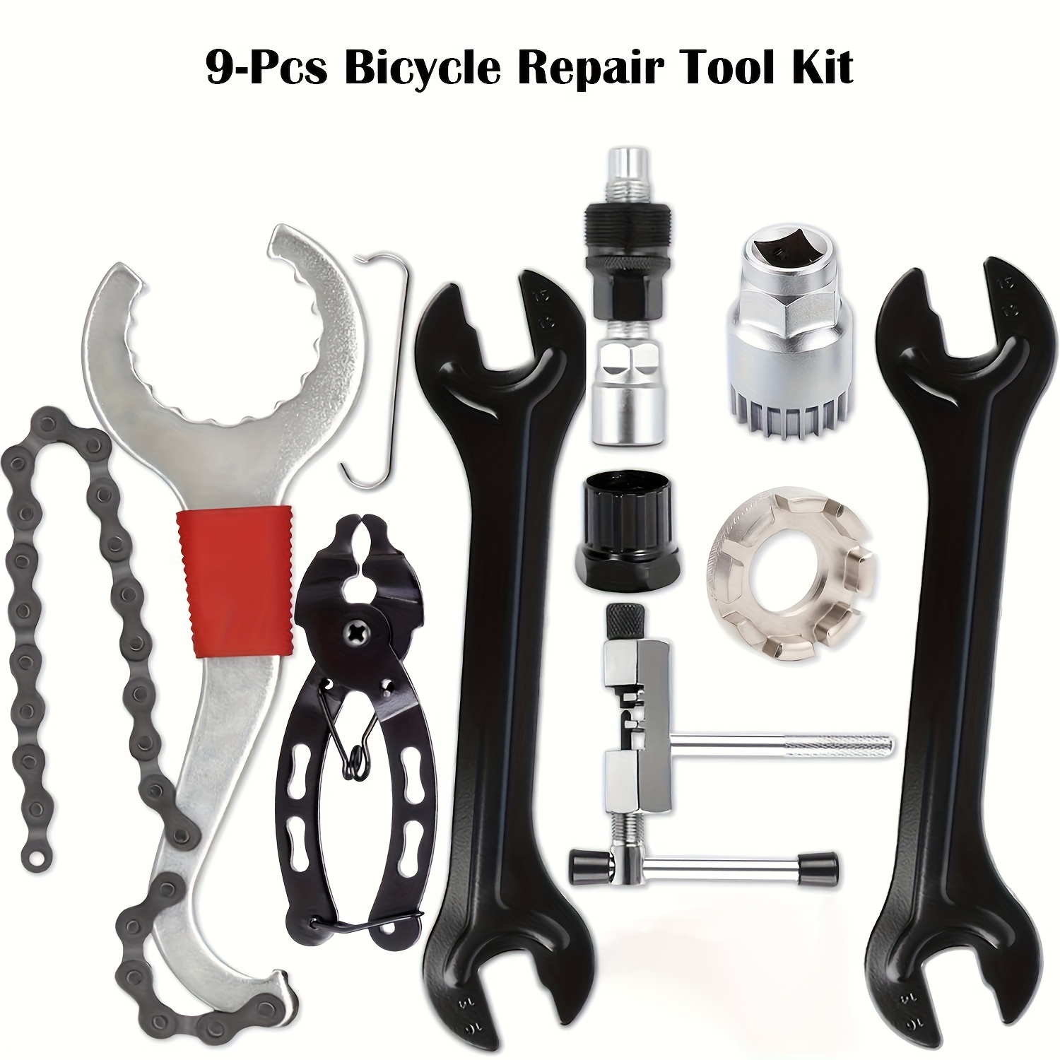 TEMU 9피스 전문가용 자전거 수리 도구 키트, 산악 자전거용, 3-in-1 박스 기어박스 제거 렌치, 크랭크 풀러, 섀시 추출기, 원웨이 클러치 분해기, 링크 플라이어, 체인 브레이커 등 포함!, 자전거 수리 키트,자전거 타이어 수리 키트,사이클링 도구 키트,자전거 키트,자전거 공구 키트|타이어