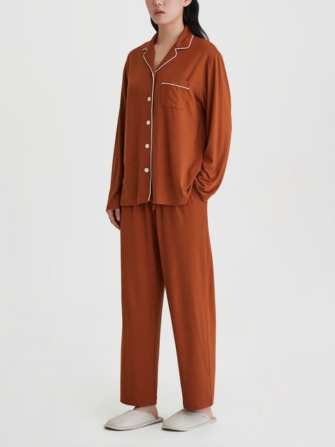 [자주 라이프웨어] [JAJU/자주] 남 코튼 스트레치 10부 파자마 세트_다크 브라운