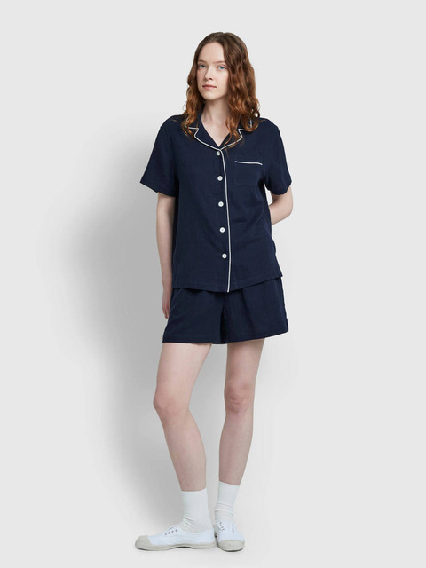 [자주 라이프웨어] [JAJU/자주] 여 썸머 더블 코튼 3부 파자마 세트_네이비