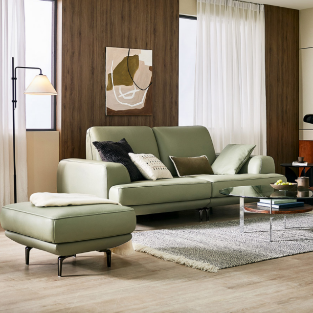 자코모 베니 3.5인 기능성 천연면피 소가죽 소파+스툴