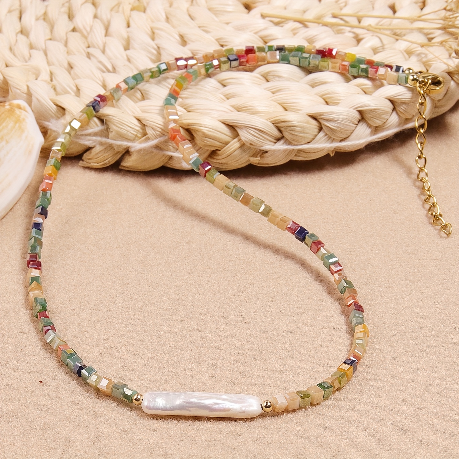 TEMU 여성을 위한 천연석 목걸이 1개, 사각석으로 수제 제작되었으며 패션 애호가를 위한 이상적인 데일리 선물입니다.