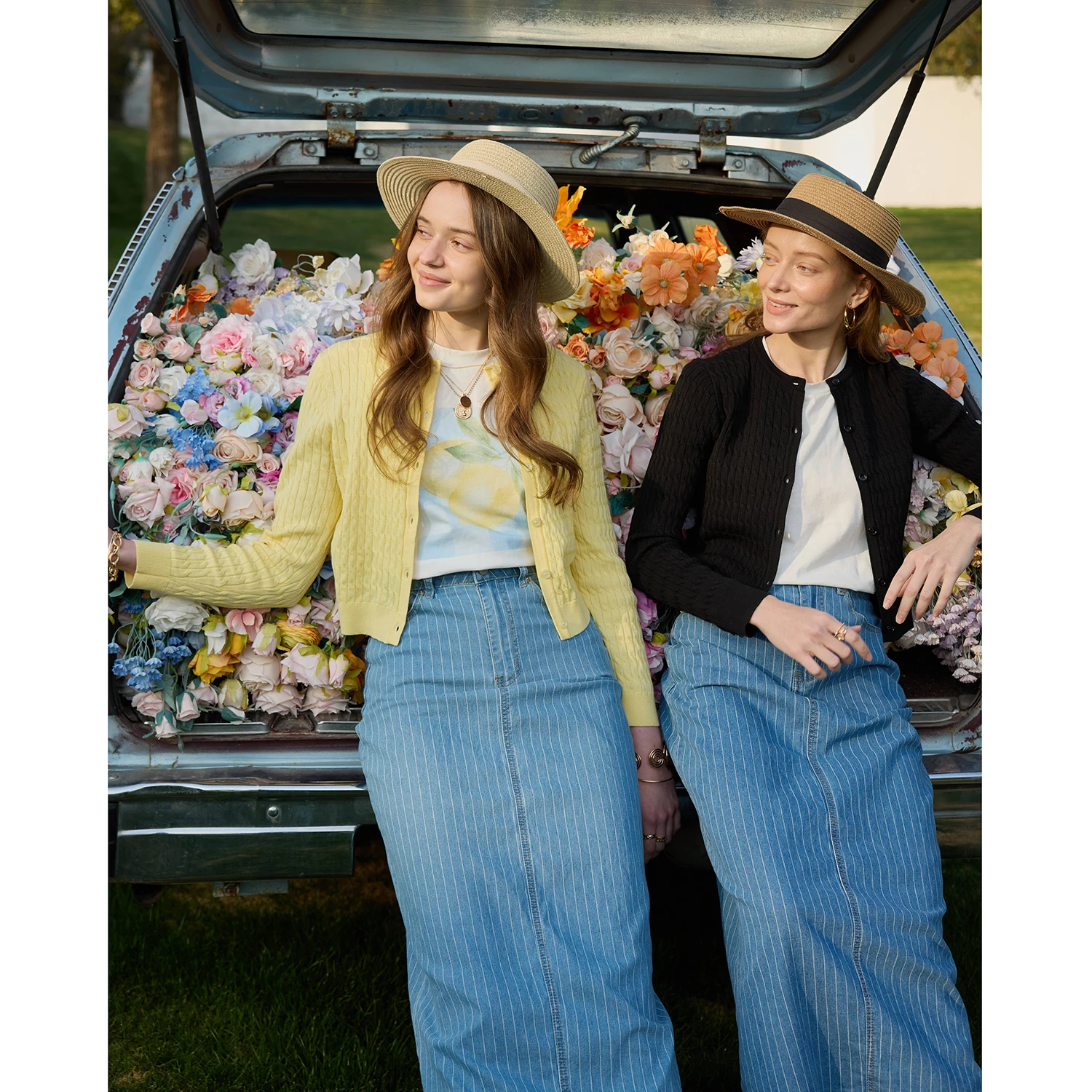 AP SS26 여성 민소매 셔츠 및 케이블 니트 가디건 의류