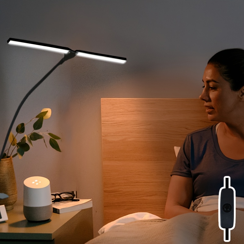 TEMU 1세트 USB 전원 유연한 이중헤드 데스크 램프, 클립 포함, 360° 조명 각도 조절 가능, 화이트 발광 버튼 제어, 사무실 컴퓨터 조명, 침실 독서 거실용, 홈 라이트, 작업 공간 조명, 슬림 디자인, 가벼운 무게, USB 램프, 학생 및 책 애호가를 위한 태스크 라이트