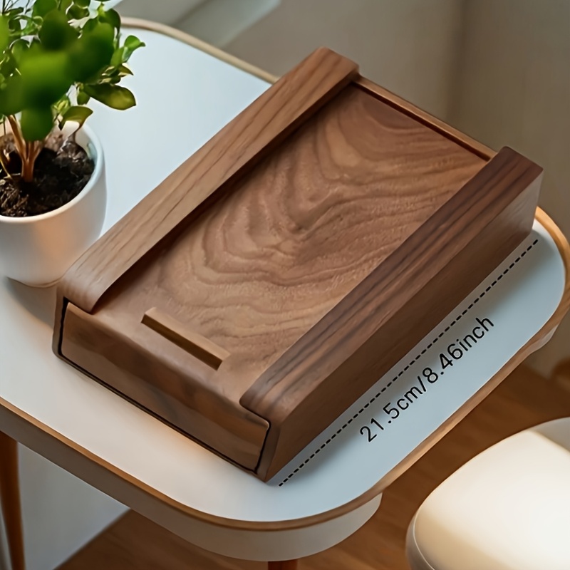 TEMU 트레이가 있는 호두나무 책상 아래 서랍 정리함 1개 - 자체 접착식 보이지 않는 수납 선반, 중형 및 대형 사이즈 사무실 & 가정용 펜, 연필, 마커 정리대 - 내구성 있는 목재 작업 공간 솔루션