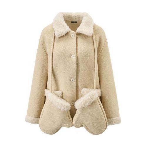 [BNX]양털 배색 장갑 세트 부클 무스탕 자켓 (BX4JK026L0)