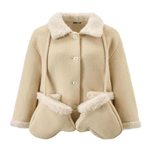 [비엔엑스]양털 배색 장갑 세트 부클 무스탕 자켓 (BX4JK026L0)