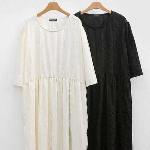 미중 여성 봄 가을 뉴 롱 자수 자카드 우아한 박시 심플 원피스aq