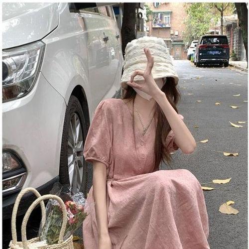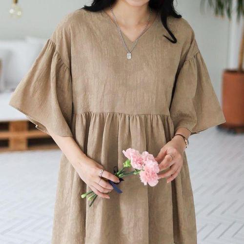 [신상오픈런]여성 자가드 브이넥 셔링 빅사이즈 미니 원피스