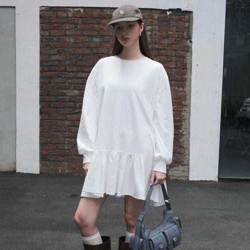 [제너럴아이디어]WOMAN 루즈핏 러플 져지 원피스 [WHITE] / WBE3L15502