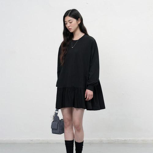 [제너럴아이디어]WOMAN 루즈핏 러플 져지 원피스 [BLACK] / WBE3L15502