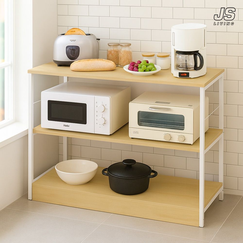벨리카가구 라이키 원목 3단 선반 렌지대 전자렌지 수납장 선반