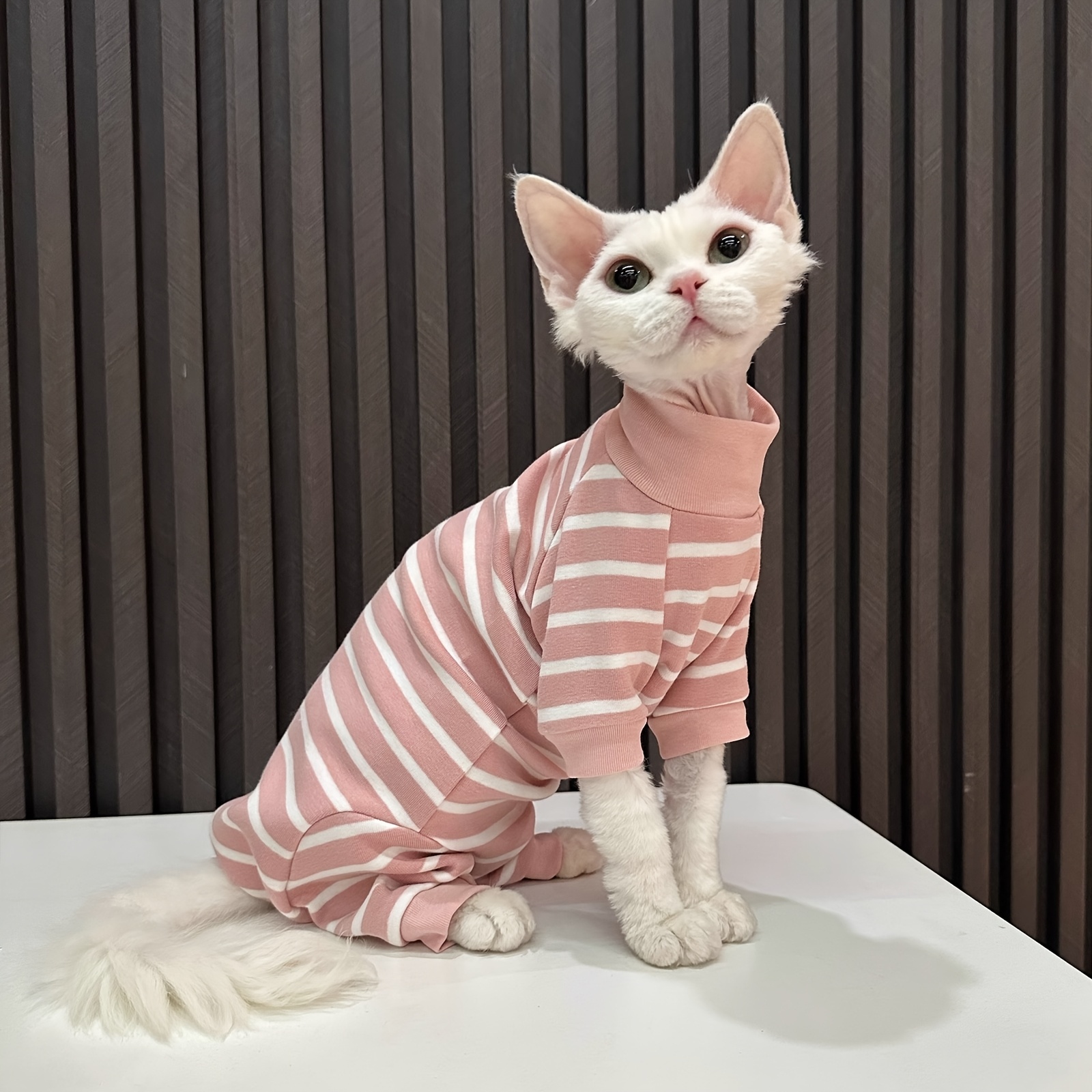 TEMU 여름용 고양이 핑크 점프수트 (털 없는 고양이용), 통기성 좋고 털 빠짐 방지 기능성 스피닉 고양이 의류