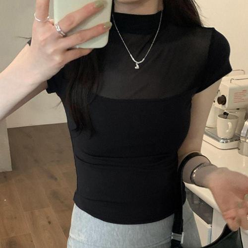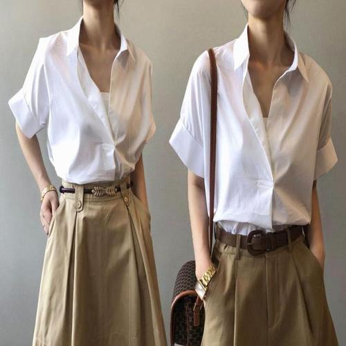 여성 정장용 싱글 칼라 반팔 크롭 셔츠