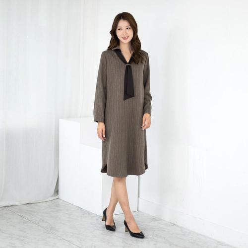 엄마옷 정장 타이카라 줄지원피스 OP509139 중년여성의류/60대/70대/마담/빅사이즈/할머니옷