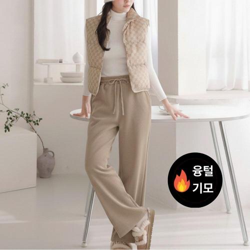 [제니유]뽀송 따뜻한 겨울 여성 밍크 융털기모 골덴 와이드 밴딩팬츠