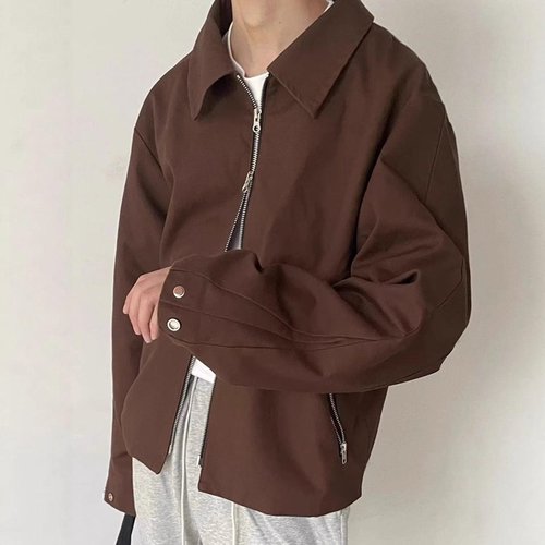 제로투올샵2 / 남성 메탈 지퍼 재킷 클린핏 커피색 m