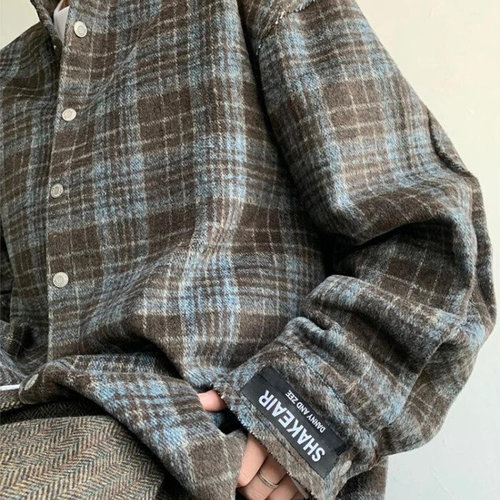 제로투올샵2 / 여성 격자 무늬 긴팔 셔츠 가을 레트로 루즈핏 커피 S