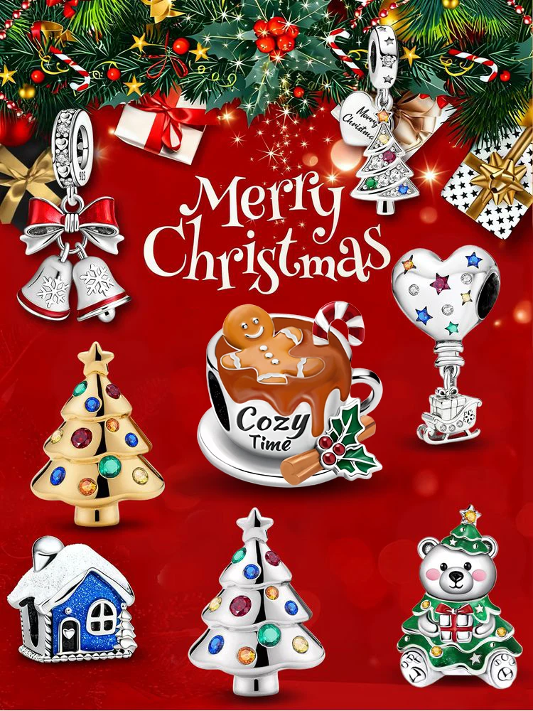 925 스털링 실버 클래식 벨 크리스마스 트리 크리스마스 시리즈 참 비즈 DIY 팔찌 제작용 고품질 주얼리 선물