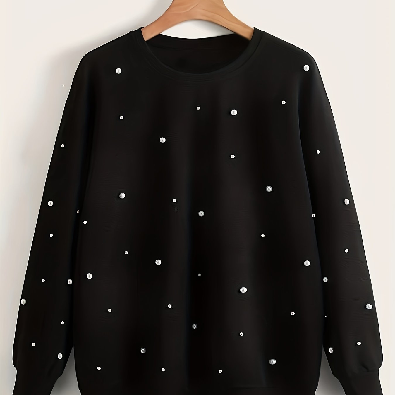 TEMU 유럽과 미국의 새로운 우아하고 패셔너블한 단색 진주 여성용 긴팔 탑