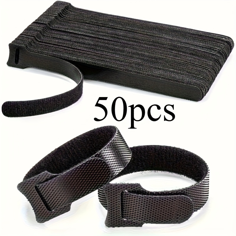 TEMU 50개입 재사용 가능한 후크 앤 루프 케이블 타이 - 5.91인치 길이, 가정, 사무실 및 데이터 센터용 코드 정리 스트랩 - 배터리 불필요 - 내구성 있는 합성 보석 소재, 질감 있는 표면 | 강력한 고정 버클, 케이블 정리기