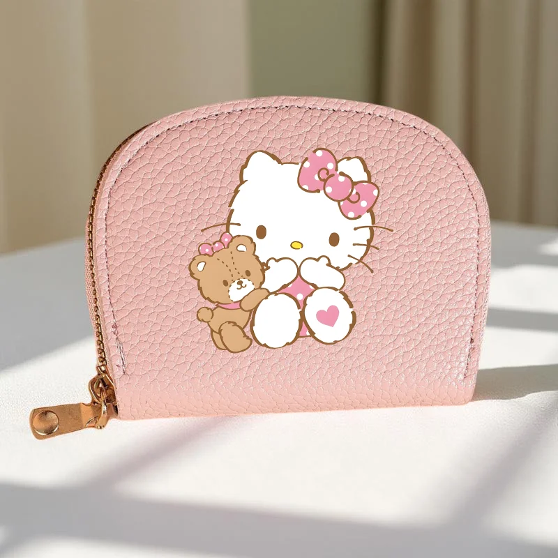 헬로키티 PU 가죽 슬림 카드 홀더 1개, 여성용 조개 모양 지퍼 지갑(카드 슬롯 포함), 지폐 수납공간이 있는 귀여운 선물