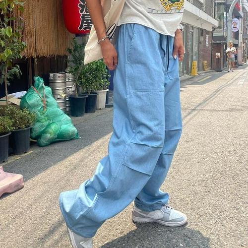 바지 유니크 리벳 커플 스트링 와이드 남녀공용 조거 키니카