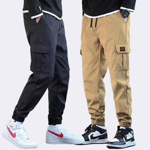 지디오 1+1 남성 카고 조거 팬츠 멀티 포켓 배기핏 9부 바지 2개 세트 긴바지