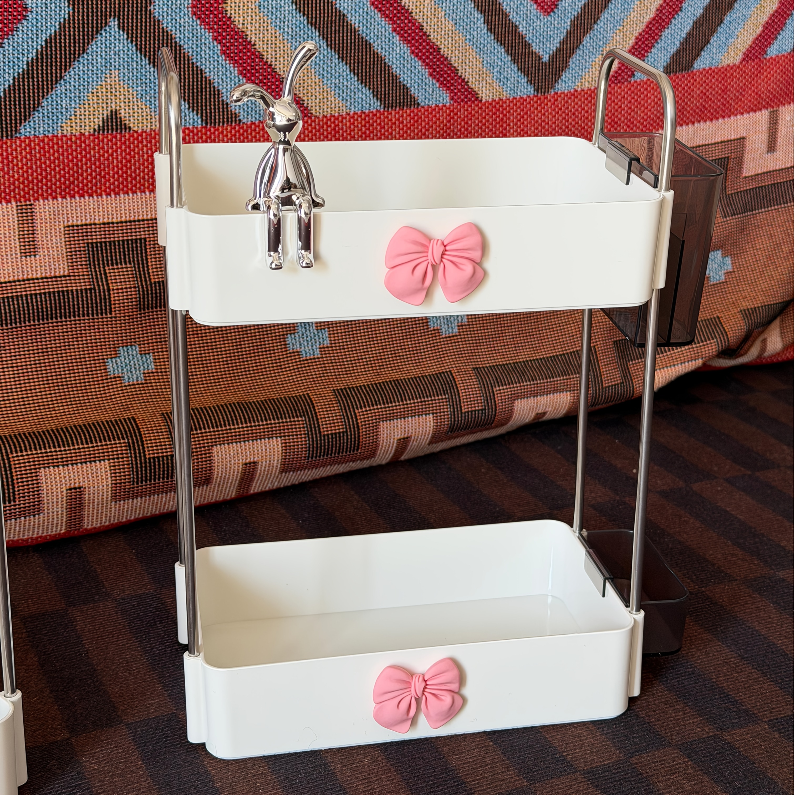 TEMU 1개 2단 화장품 보관함, 자가 조립 및 접착식 액세서리, 토끼 리본 장식 - 다기능 욕실 수납함, 플라스틱 조리대 수납함 (싱크대 화장대용), 컴팩트하고 공간 절약형 디자인