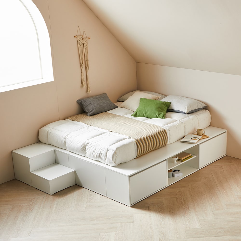 스마트 슬라이딩 슈퍼싱글 벙커수납 침대프레임 (안전가드+계단포함)