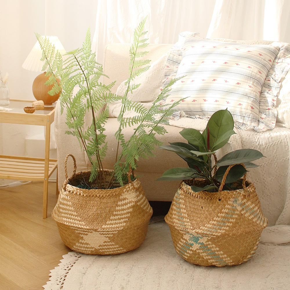 라탄 해초 바구니 인테리어 조화 화분커버 손잡이 바스켓 2 type