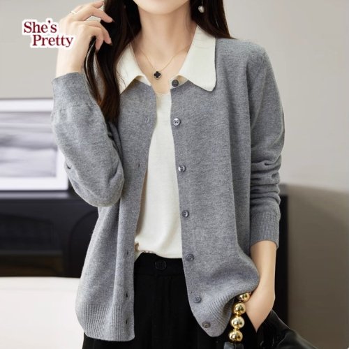 [쉬즈프리티] 미카엘배색카라가디건니트 L까지_여성가디건