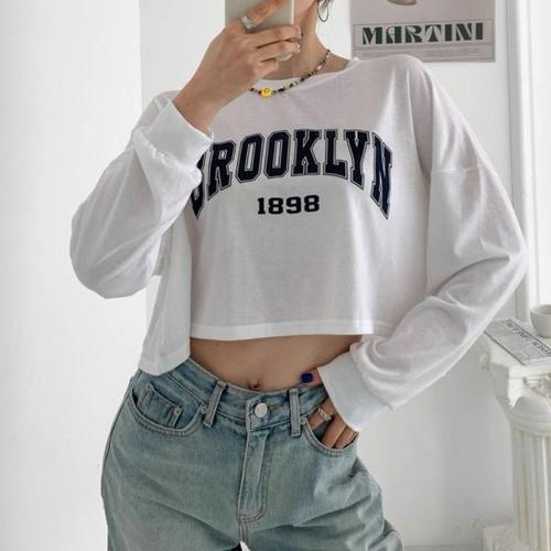 [옷자락]여자 캐쥬얼 필기체 방송댄스복 롱슬리브티 탱크 티셔츠