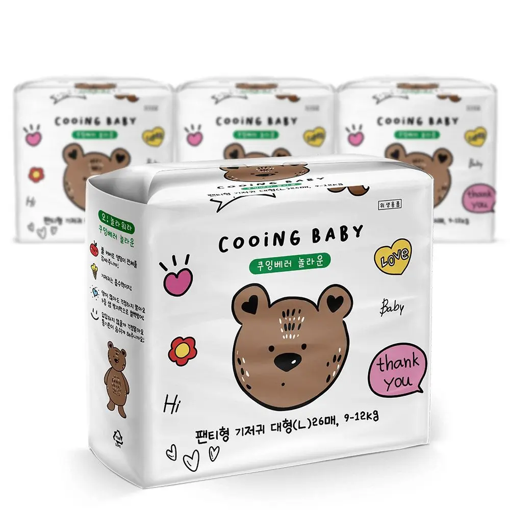 쿠잉 베러 놀라운 팬티형 기저귀 대형(L) 26매 4팩 (9kg ~ 12kg)