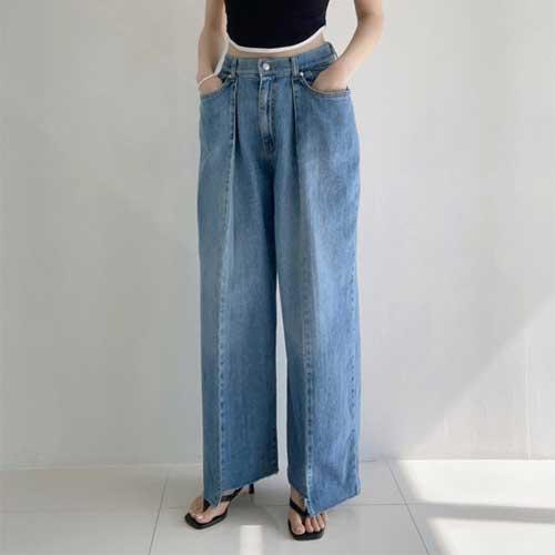 [라일리여성의류] Rly 여성 핀턱 와이드 주름 일자 청바지 스판 데님